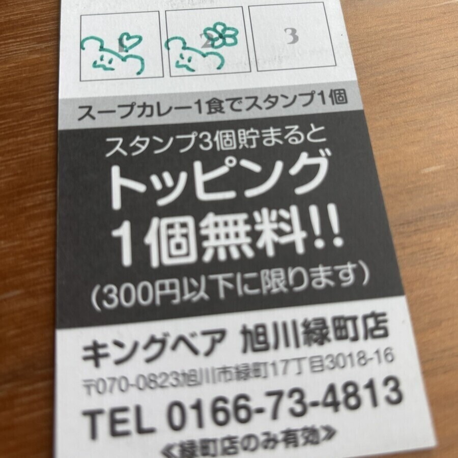 KINGBEAR 旭川緑町店ではスタンプカードを発行していて、