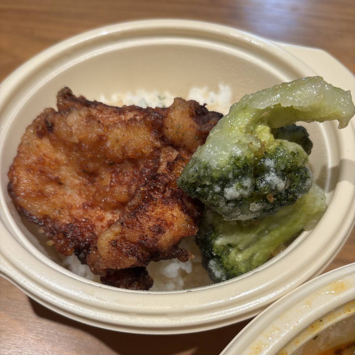 今回いただいたのは、侍ザンギと野菜カレー(8品目)。