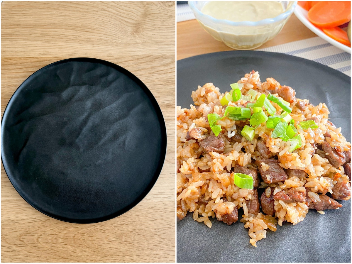 またこの黒い色が、パスタやサラダを盛るだけでもオシャレに見えて、料理が映える!