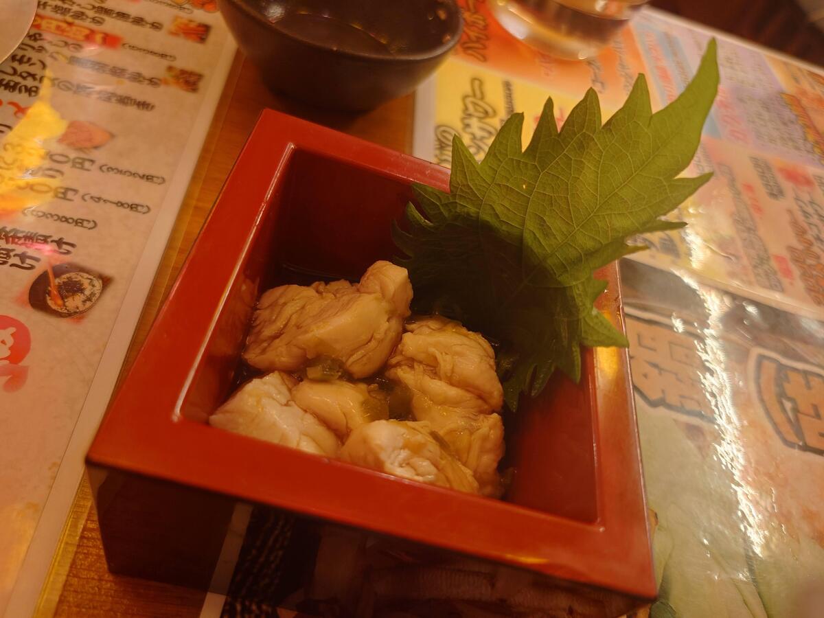 しっとりとした鶏の旨みに、わさびの爽やかな刺激がよく合う。