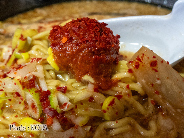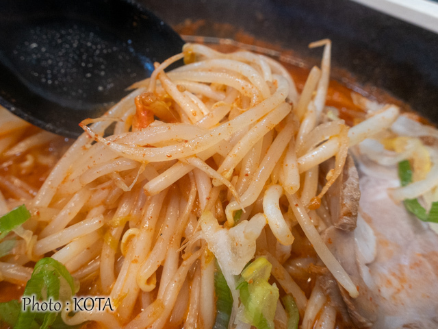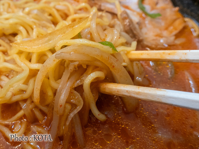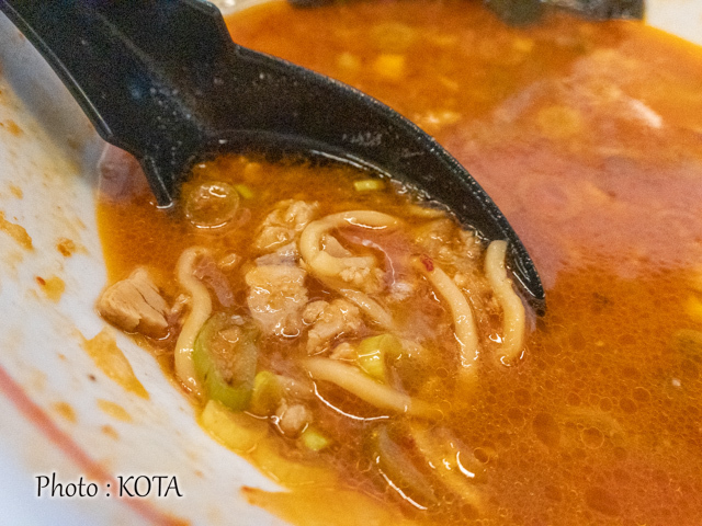 するりと口にすすり込めば、旨辛のコクと麺の甘味が合わさった刺激的な美味しさが口の中に充満する。