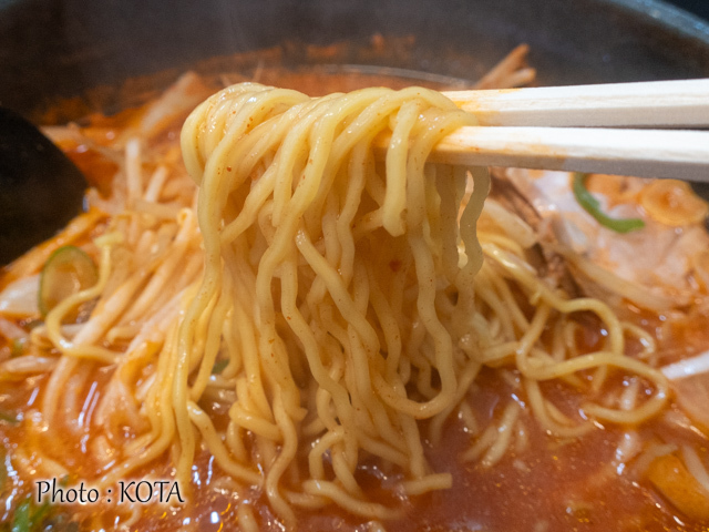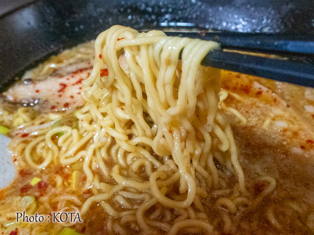 そんな旨辛なおつゆと、しなやかな細麺との相性はばつぐん。