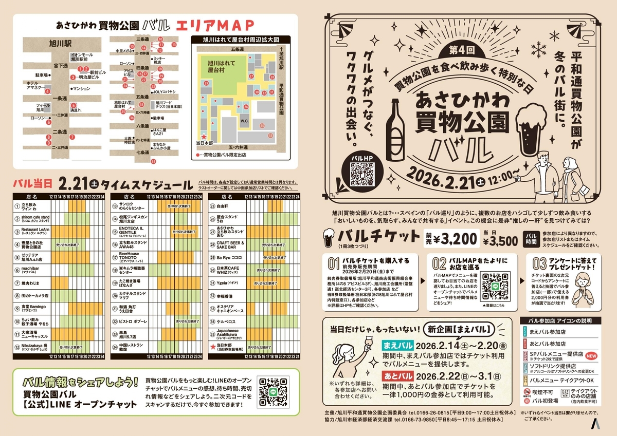 2026年2月21日(土)に旭川平和通買物公園周辺で『第4回 あさひかわ買物公園バル』が開催されます。