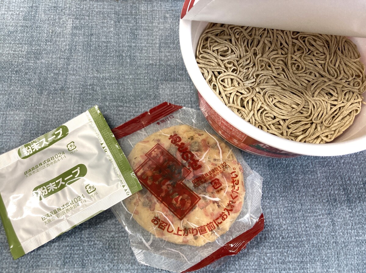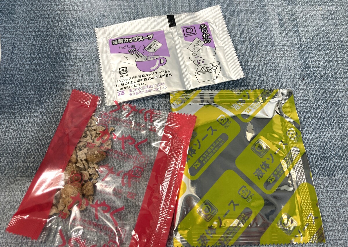 焼きそば弁当の魅力のひとつは、粉末スープが付いてくることです。