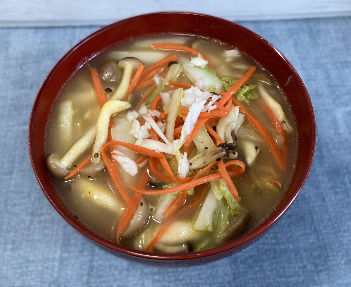 野菜をたっぷり後乗せで作ってみましたが、もやしやキャベツの水分で少し味が薄くなったかもしれません。野菜を炒めて水分を飛ばし、お湯を少し少なめにするとより美味しくなります。