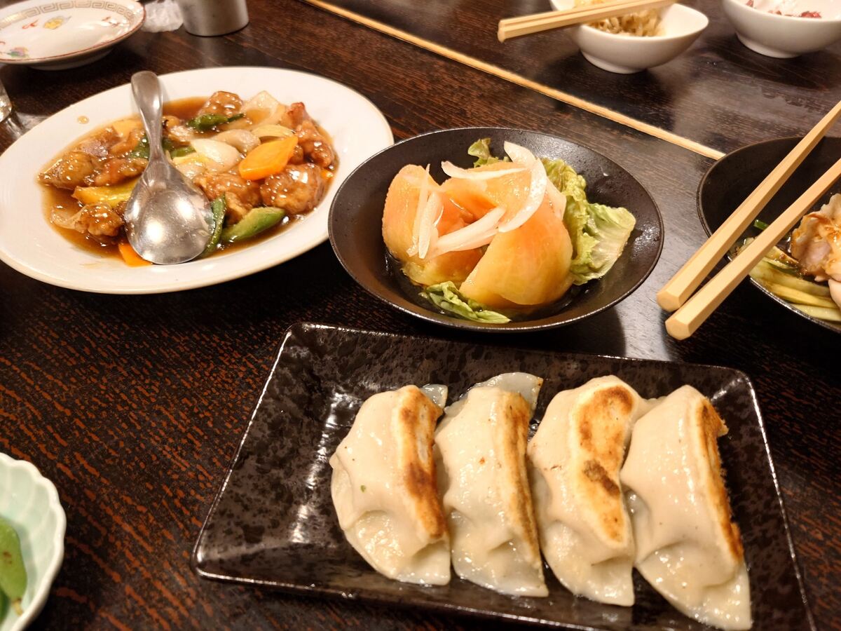 餃子はこんがり焼き目が香ばしくて、噛めばじゅわっと肉汁。