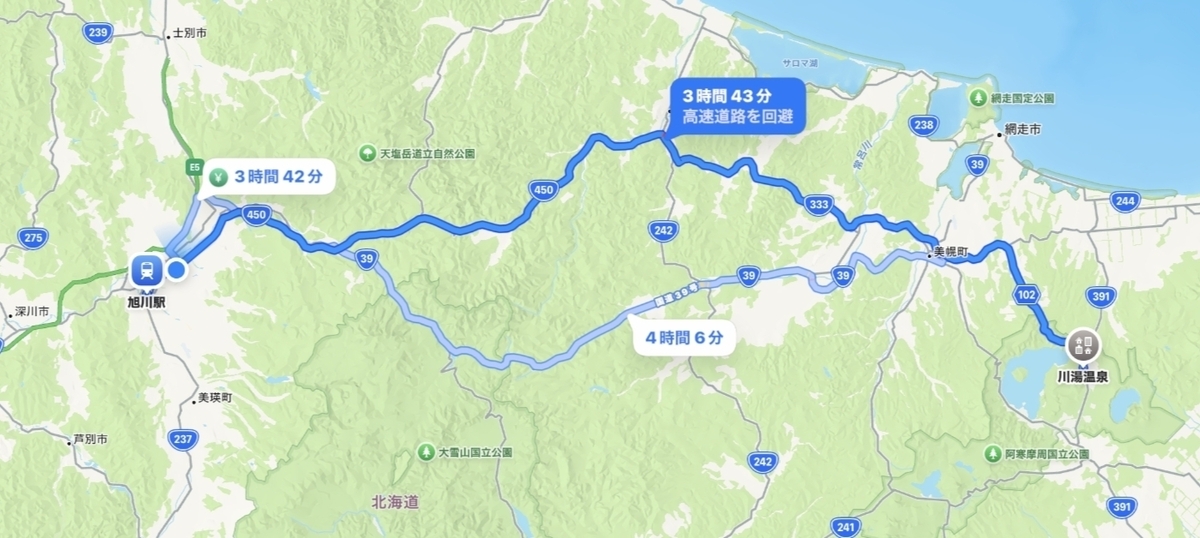 のんびりと国道39号線で北見経由、というのも悪くないでしょう。
