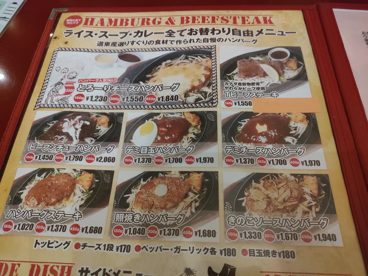ハンバーグだけでもご覧の通り多くのバリエーションがありますので、好みに合わせて選ぶ事ができますよ。