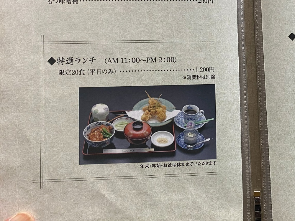 しばらくぶりの訪問で、お品書きを眺めながら何を注文しようか並んでいたら、お店の方に「今日は特選ランチがありますよ」と勧められました。