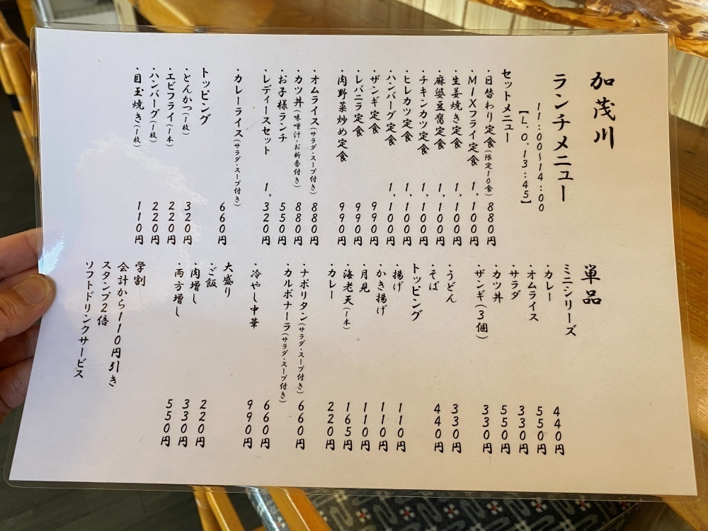 「お食事処 加茂川」のランチメニューもかなり種類が豊富です。