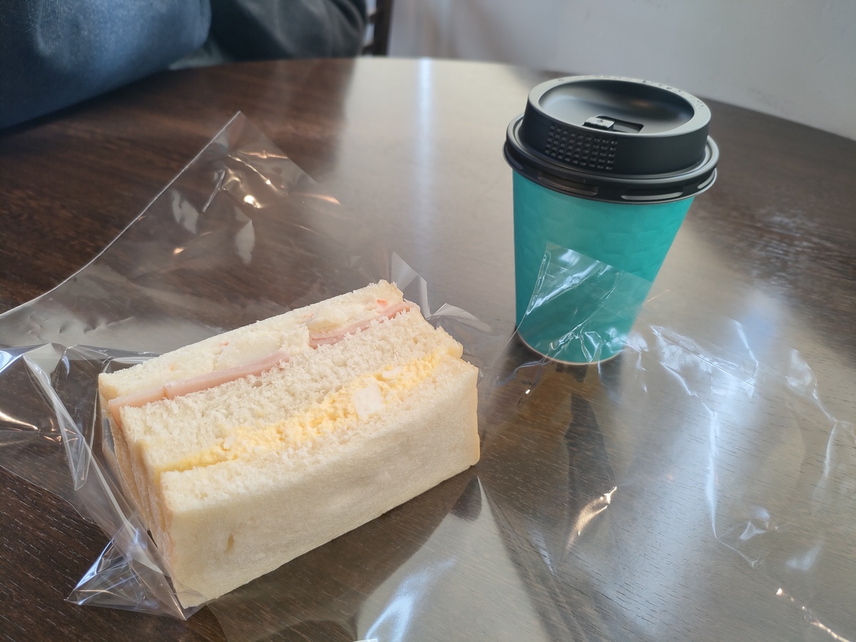 たまごサンドとポテトサラダハムサンドのセットです。