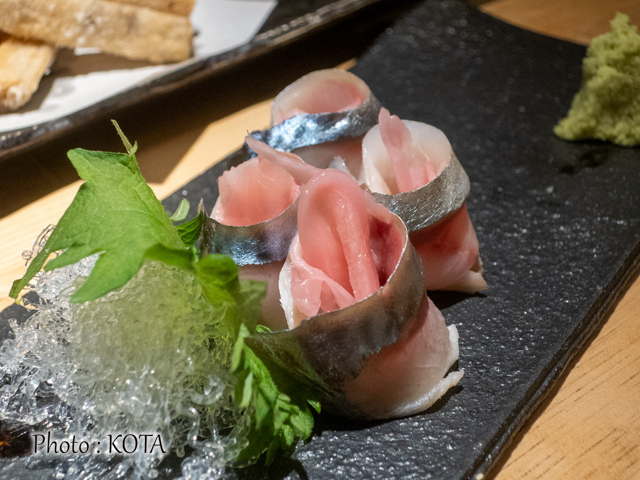 であるが頂いてみたところ、わらい八のそれはサバの旨さが違う!! おかげでガリ(生姜甘酢漬け)の風味が塩梅よく引き立つ、総じてまろやかな味わいは、ぜひご賞味いただきたい逸品(時価、お問い合わせを)。