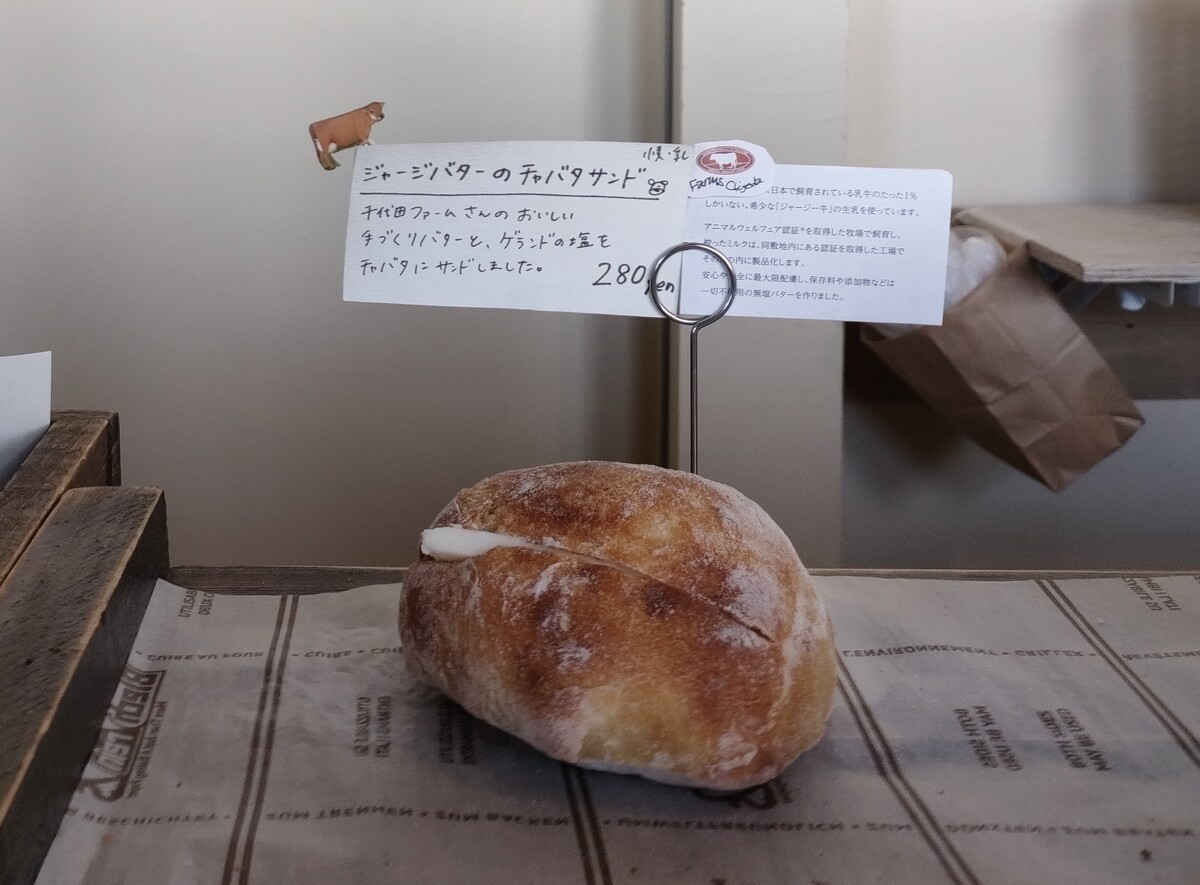ジャージバターのチャバタサンド 280円(取材時の価格です)