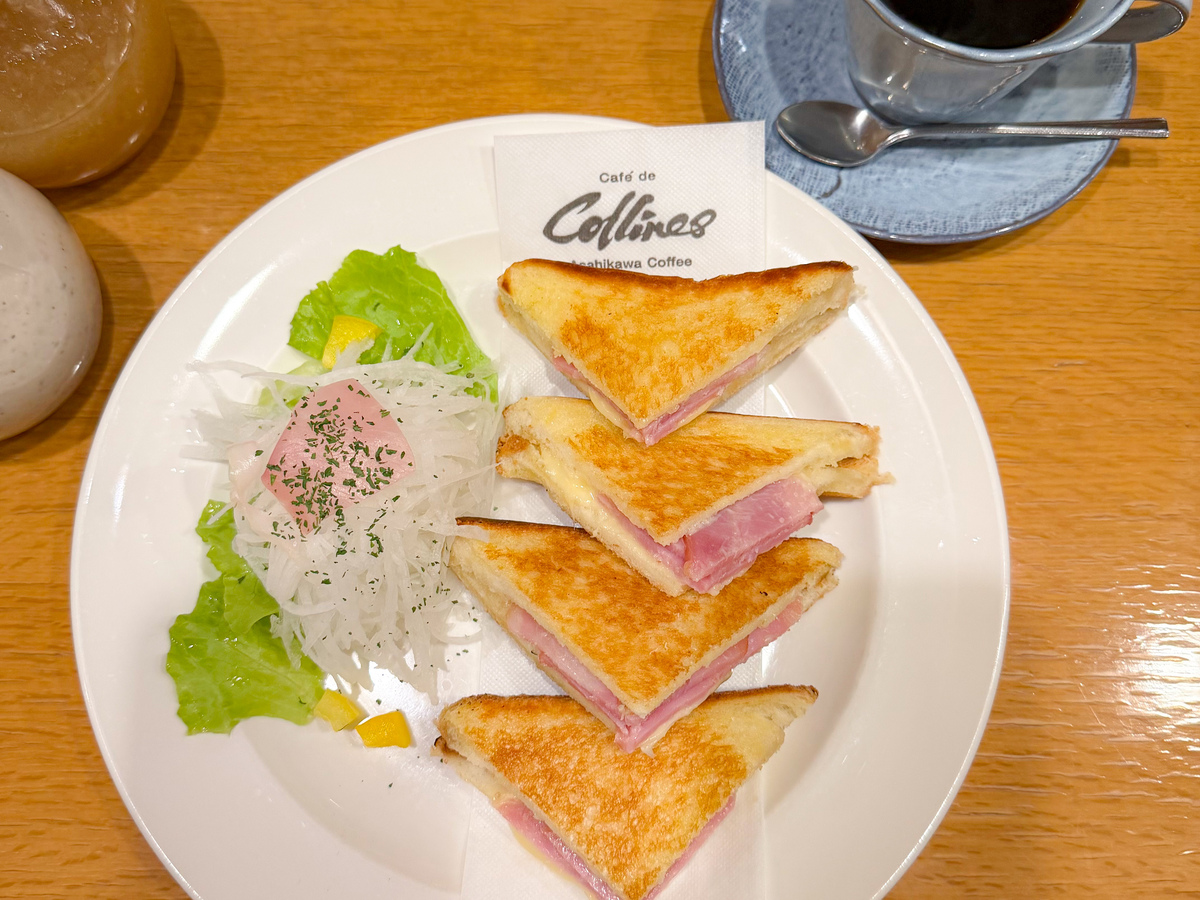 旭川市中心部、1条通のA.s.h地下1階『カフェ・ドゥ・コリンズ』の「クロックムッシュー 1,345円(税込)」。