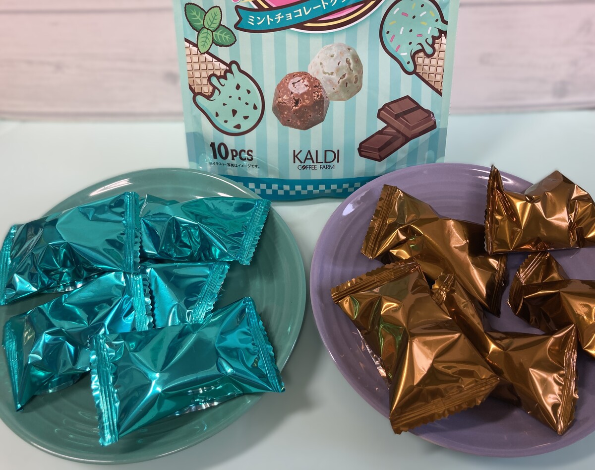 まずは、輸入食品やオリジナル商品が人気の「カルディコーヒーファーム」で見つけたチョコミントのお菓子。