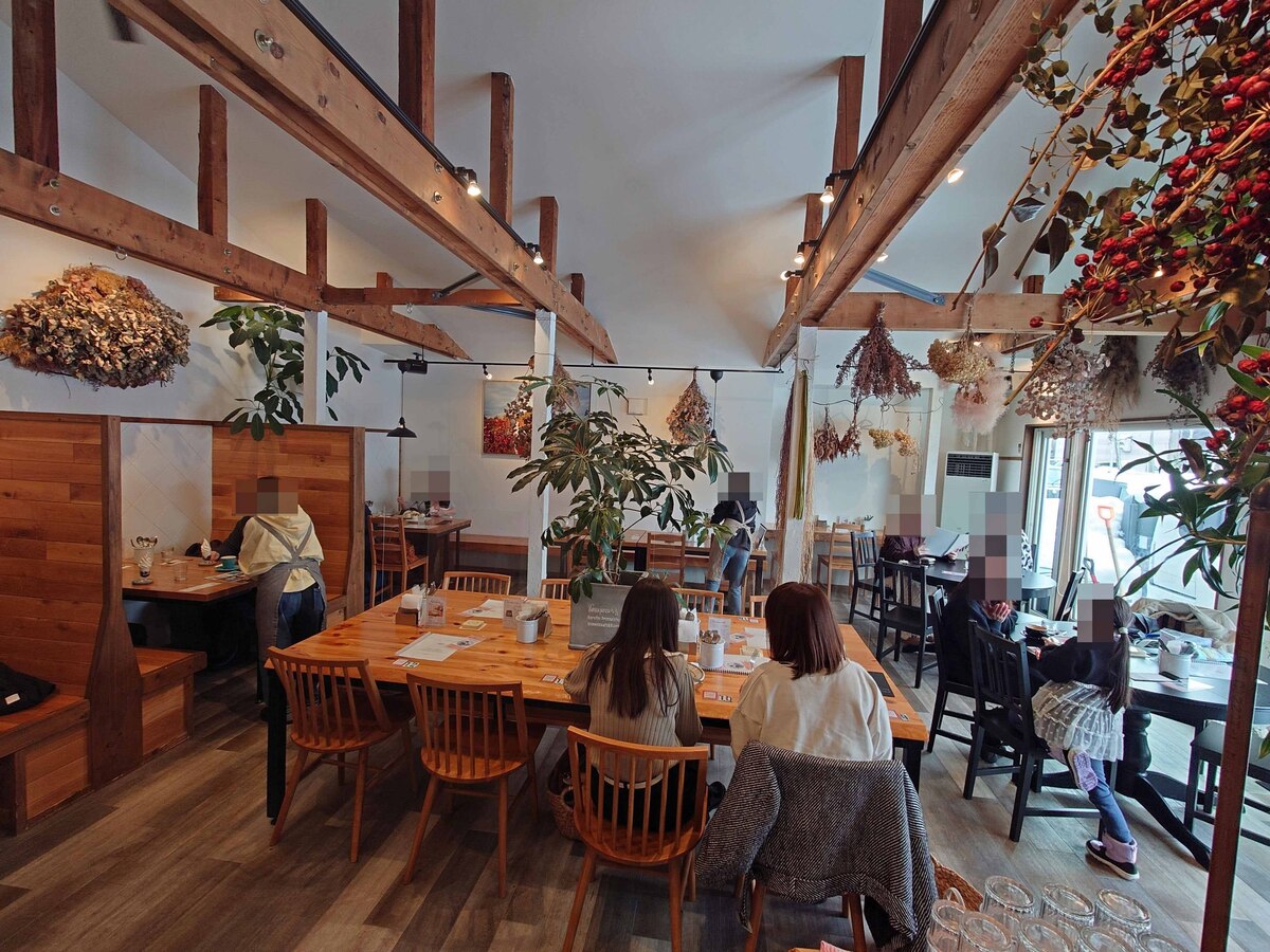 木の温もりを感じる内装に、ドライフラワーが飾られていて、どこを見ても絵になる空間。