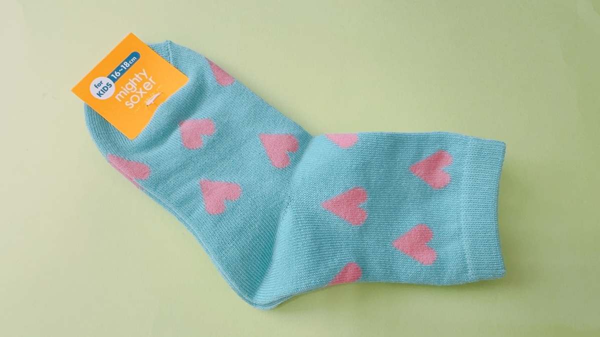 コントラストがとっても可愛い水色とピンクの靴下です。