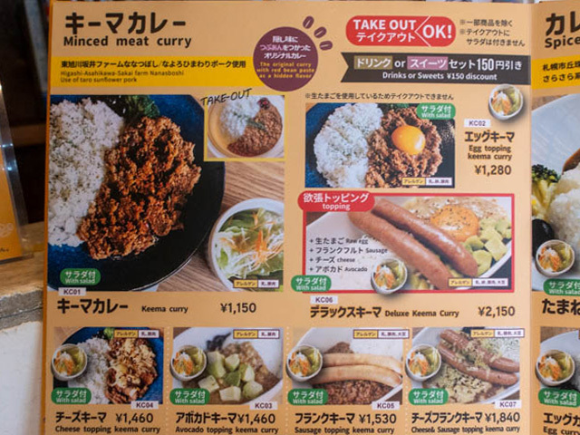 ほか、キーマカレーとたまねぎカレーのあいがけもある。