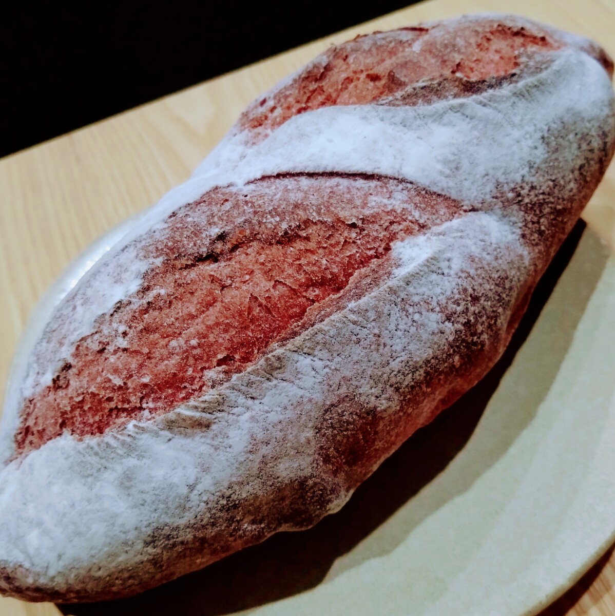 1月発売の「赤ワインのカンパーニュ」に引き続き、ビーツのパンも美味でした。ハード系パンに健康食材練り込むシリーズ、ひそかにファンです。