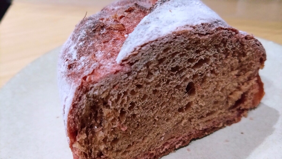 ビーツはボルシチやサラダで食べたことがありますが、パンに練り込まれたパターンははじめて。湧き上がる好奇心。