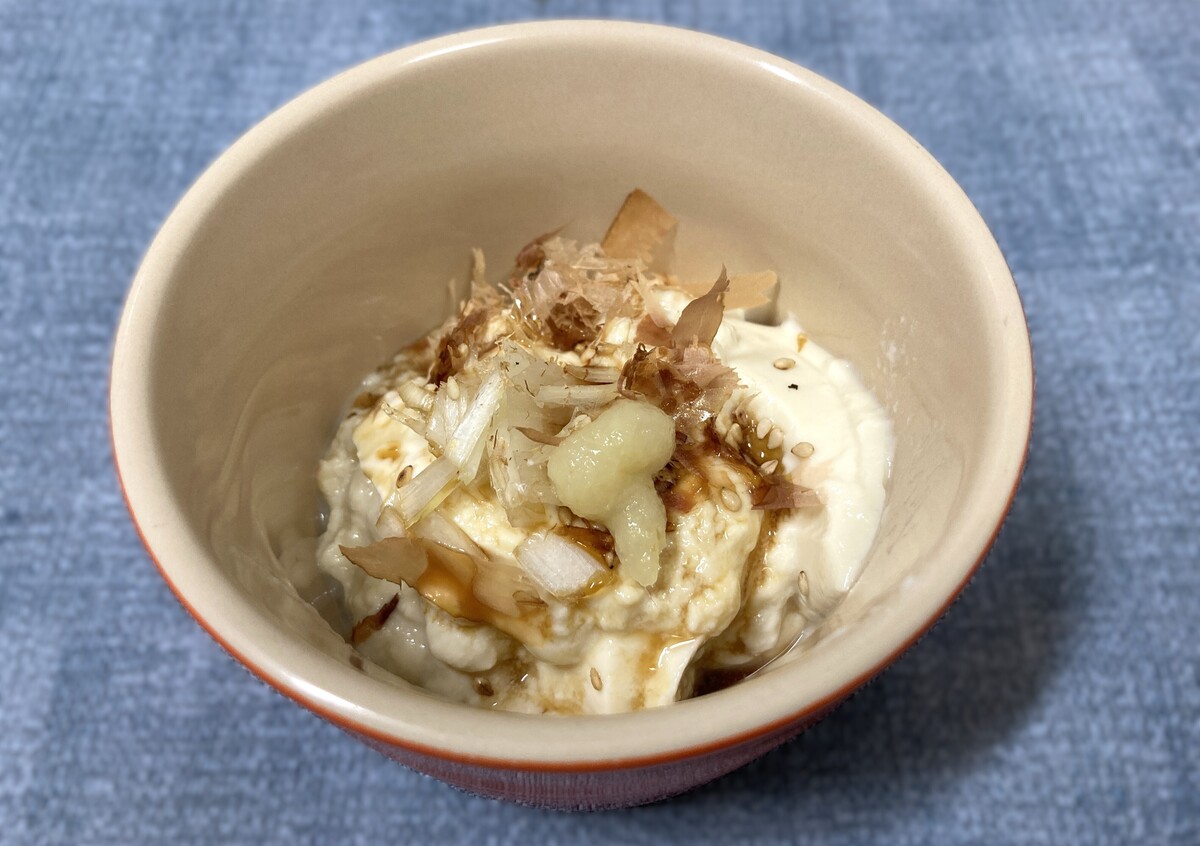 寄せとうふは、ネギと鰹節、めんつゆでシンプルに。