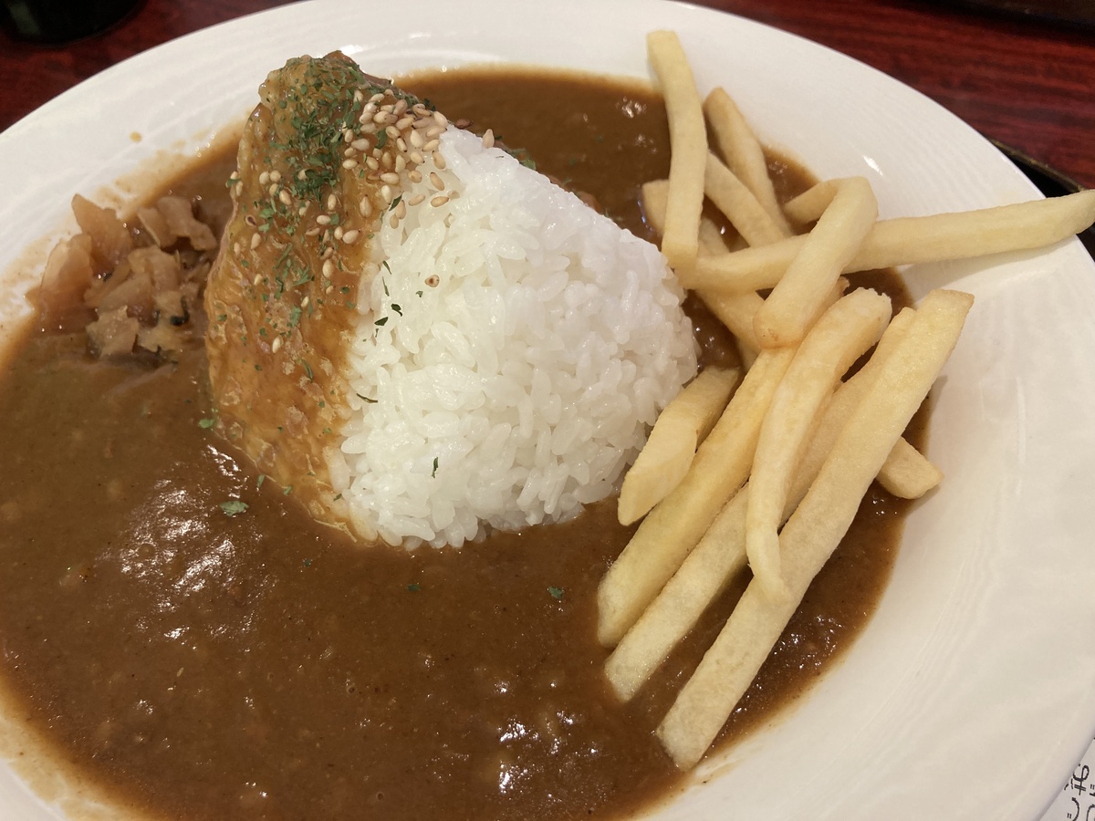 自家製のカレーは旨みたっぷりで、あとからスパイスがほんのり効いてきますが、辛すぎず食べやすい味。