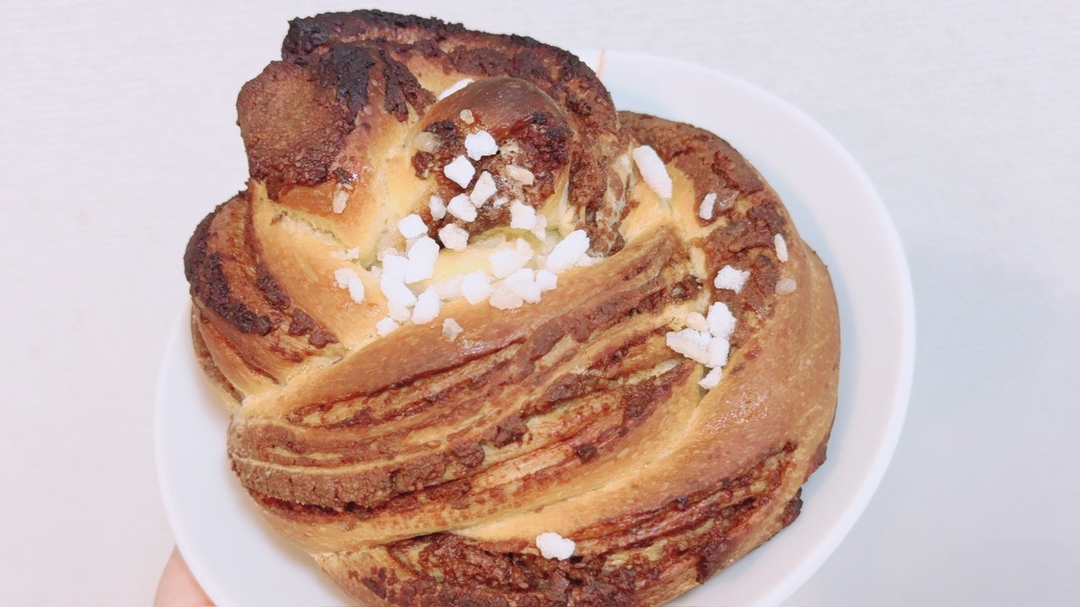 朝食はブーランジェリーまわりみちでシナモンロールの購入。
