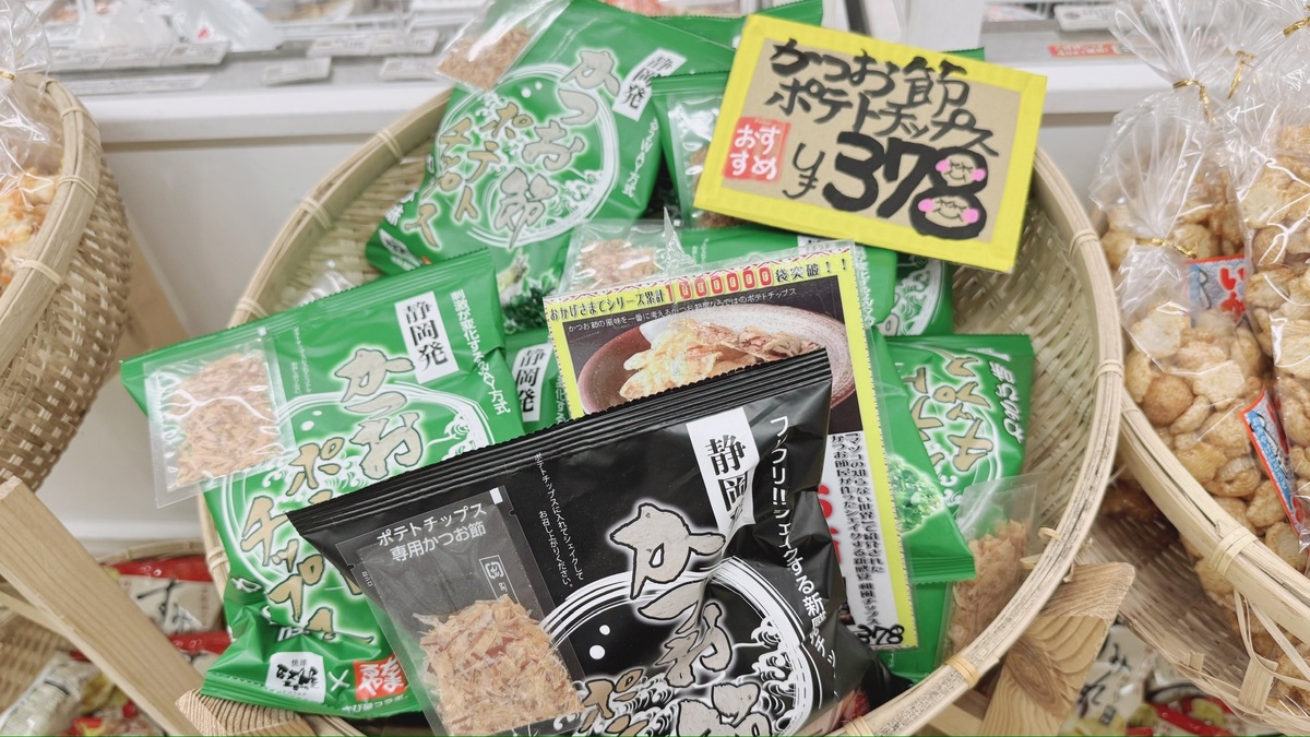 鰹節をかけてフリフリして食べる斬新なアイディアなポテトチップスでした。