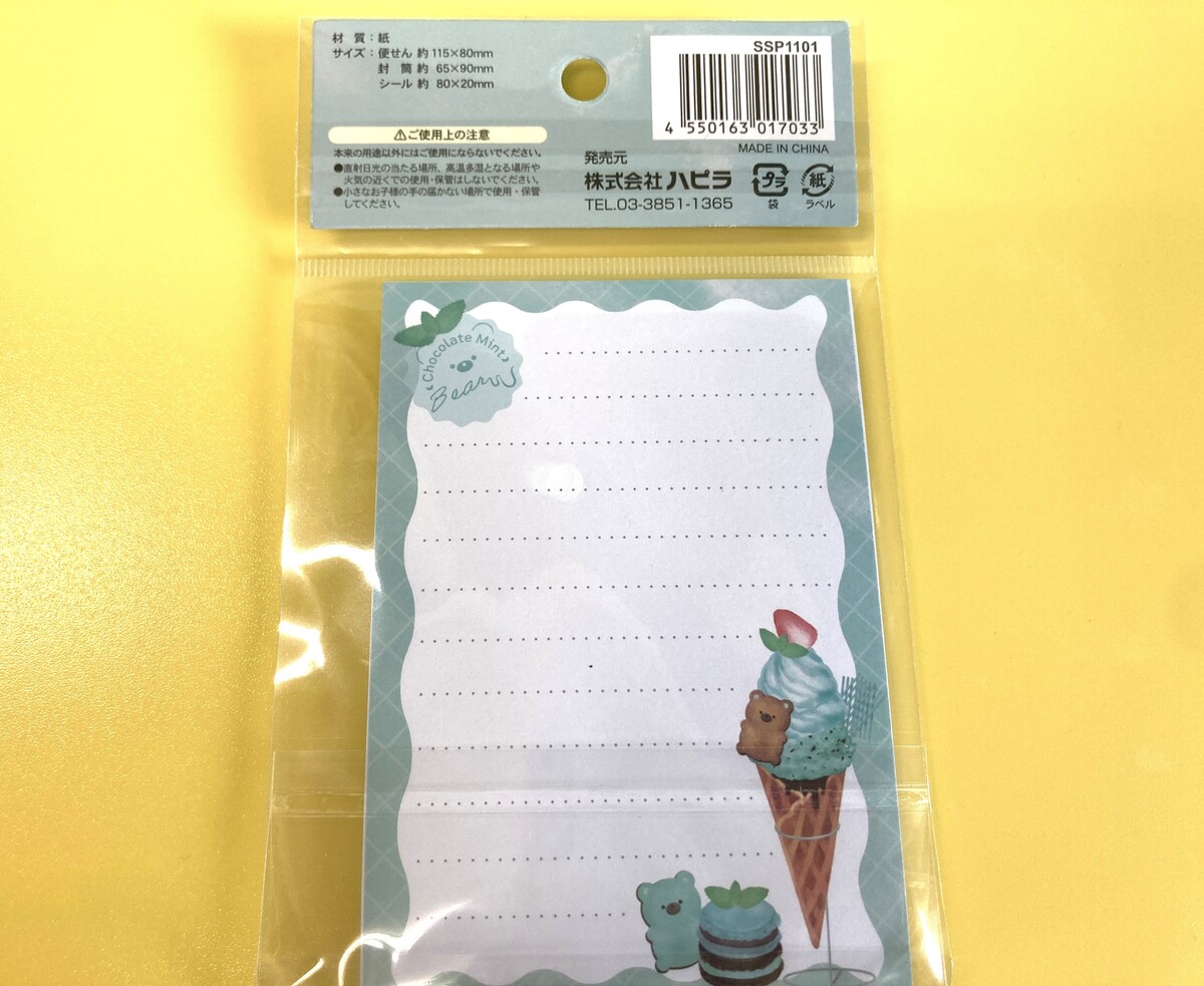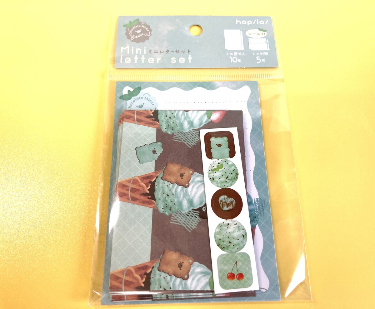 ミニサイズの便箋と封筒がセットで、シールも付いています。