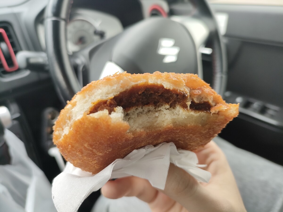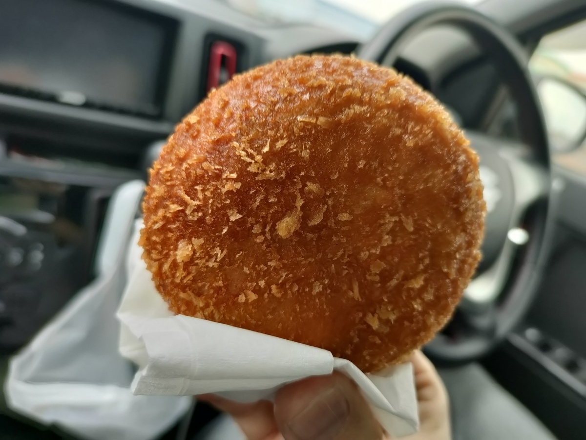 車の中で揚げたてをいただきました。