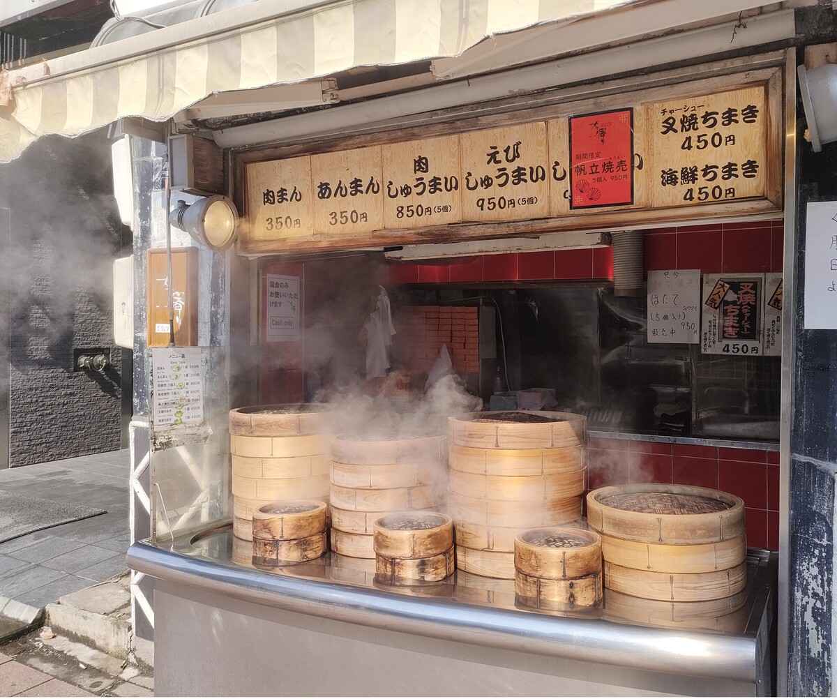 お店に近づくにつれて、せいろが何個も並んでいるのが見えてきて、