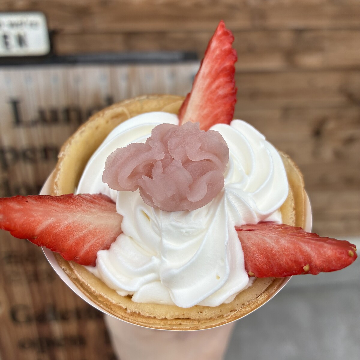 期間限定クレープ 桜あんいちごクリーム900円を注文。