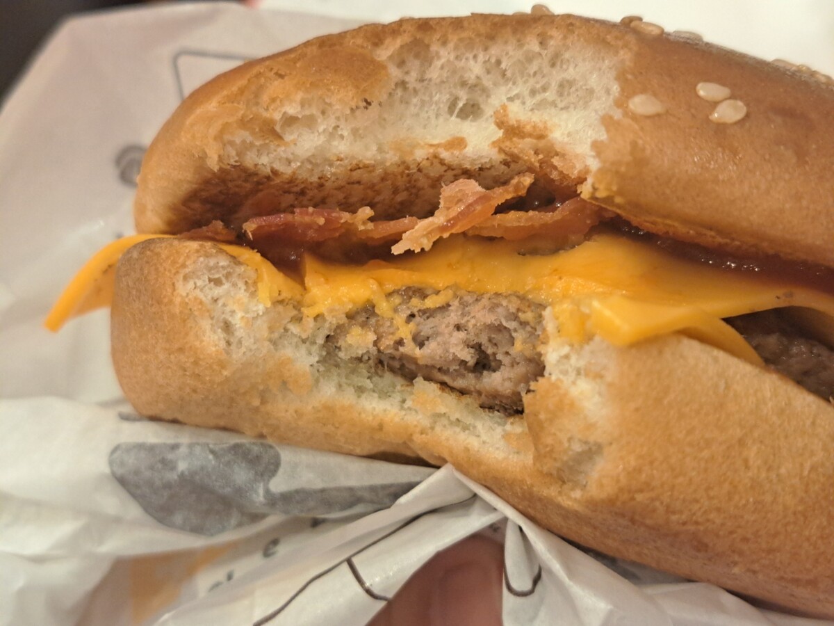 こちらの「チーズバーガー」、中身を見せたくてちぎりましたが、