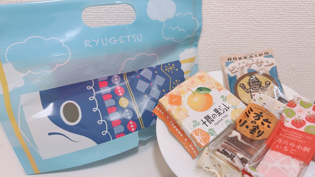 柳月 イオンモール旭川駅前店で遠くから歩いていてもめをひくパッケージだったこいのぼりバッグ650円。