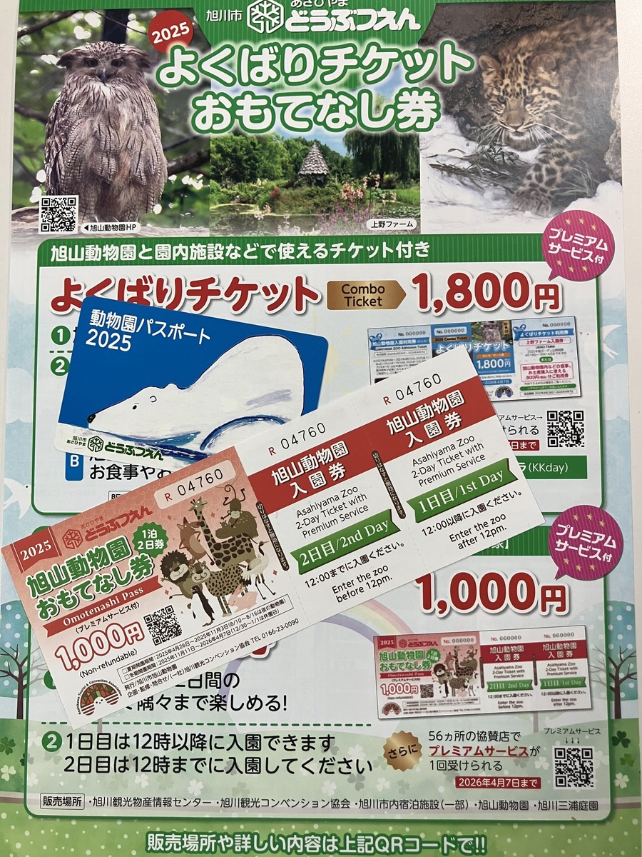 ・旭山動物園おもてなし券(1泊2日券)…1,000円