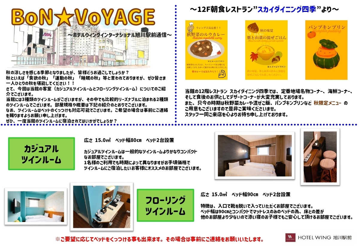 ホテルの最新情報や旭川市内近郊のおすすめスポットなど旅に役立つ情報が掲載されています。
