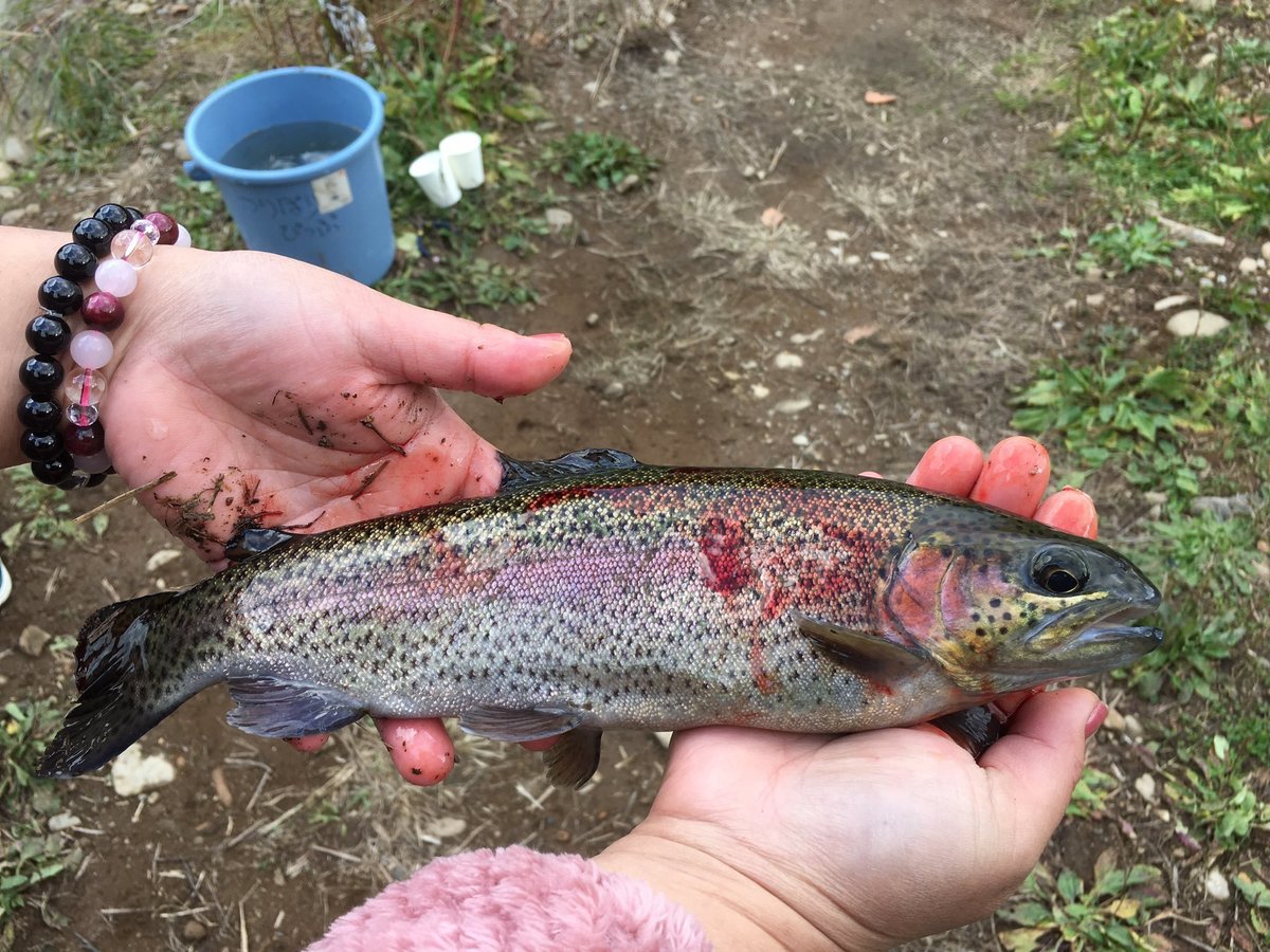 この日の釣果は子ども二人で大きなニジマスを5匹。