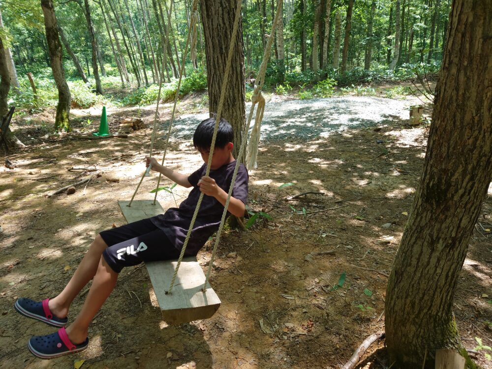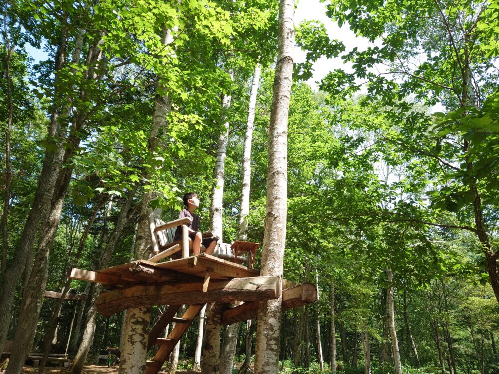 アクティビティーエリアにはツリーテラスや、手作りブランコ、スラッグライン、ハンモックなど自然が満喫できます