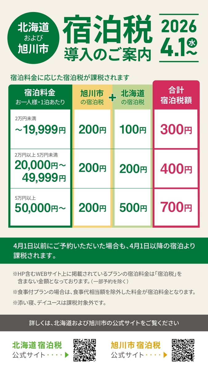 ■2026年4月1日~北海道および旭川市 宿泊税導入のお知らせ
