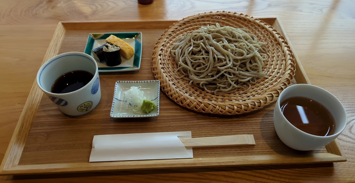 もりそばを注文しましたが、そばの実を使った巻物と卵焼きがついてきました。