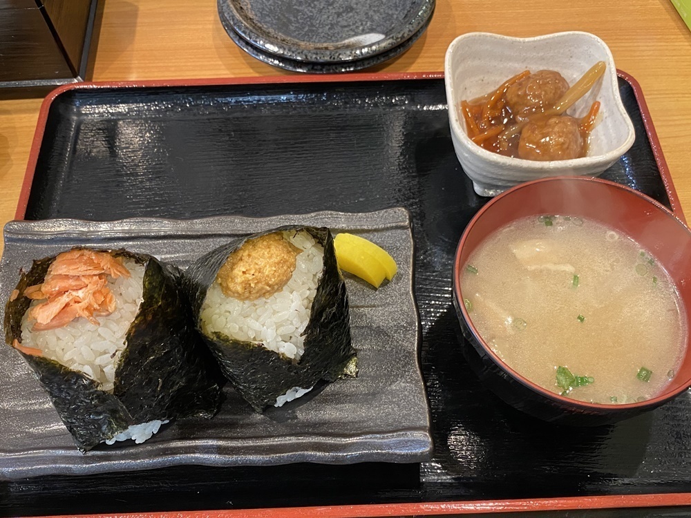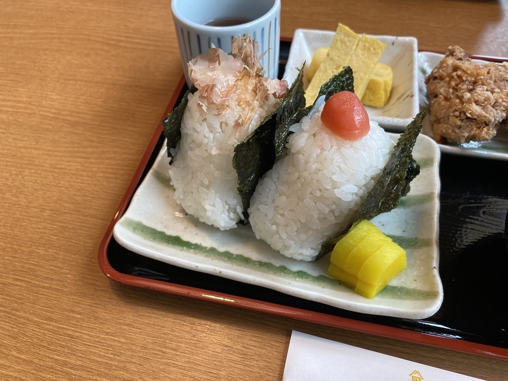 大きなおにぎりは、2個でお腹いっぱいになります。北海道産生肉を使った揚げたての唐揚げも絶品で、満足感が高いですよ。