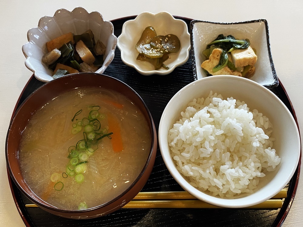 お米は神楽町のななつぼし、お味噌汁にも道産のものを使っているそうです。お味噌汁もおかずも優しい味。朝ごはんのような定食を、朝だけでなく1日中食べられるとはうれしいですね。