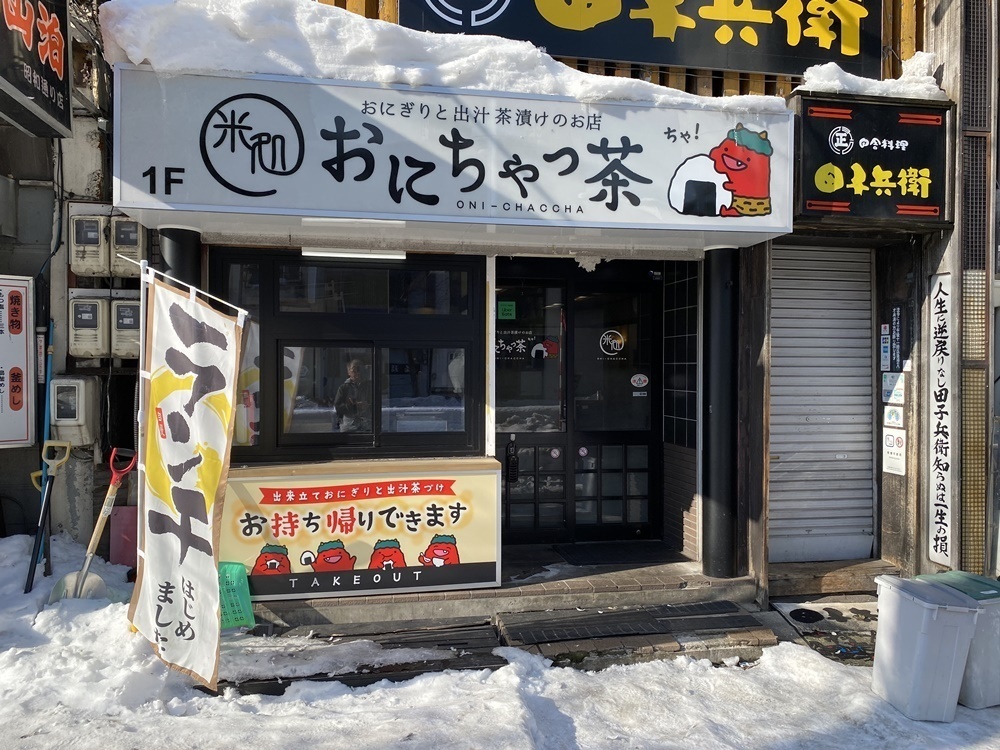 3軒目にご紹介するのは、ユニークな店名と可愛らしい鬼のイラストが特徴的な「米処 おにちゃっ茶」です。お店があるのは昭和通りに面した3条通6丁目、以前「大番寿司」が営業していた場所です。