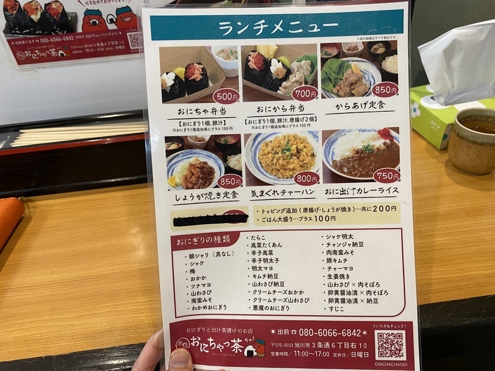 ランチメニューは、「おにちゃ弁当」「おにから弁当」「からあげ定食」「しょうが焼き定食」「気まぐれチャーハン「おに出汁カレーライス」の6種類。「おにちゃ弁当」はワンコインの500円とリーズナブルな設定です。