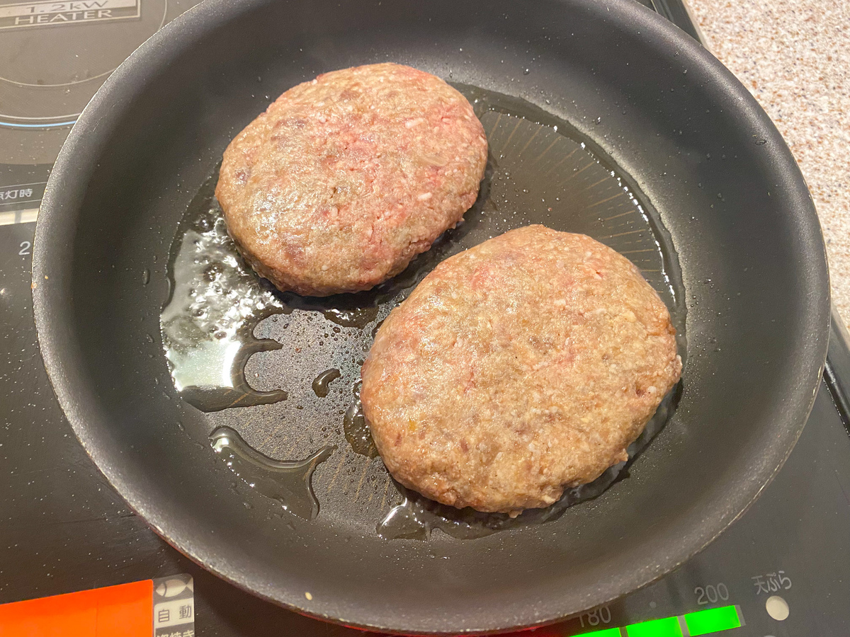 フライパンで両面焼いて蒸し焼きすると、自宅でもエスペリオの絶品ハンバーグが完成!