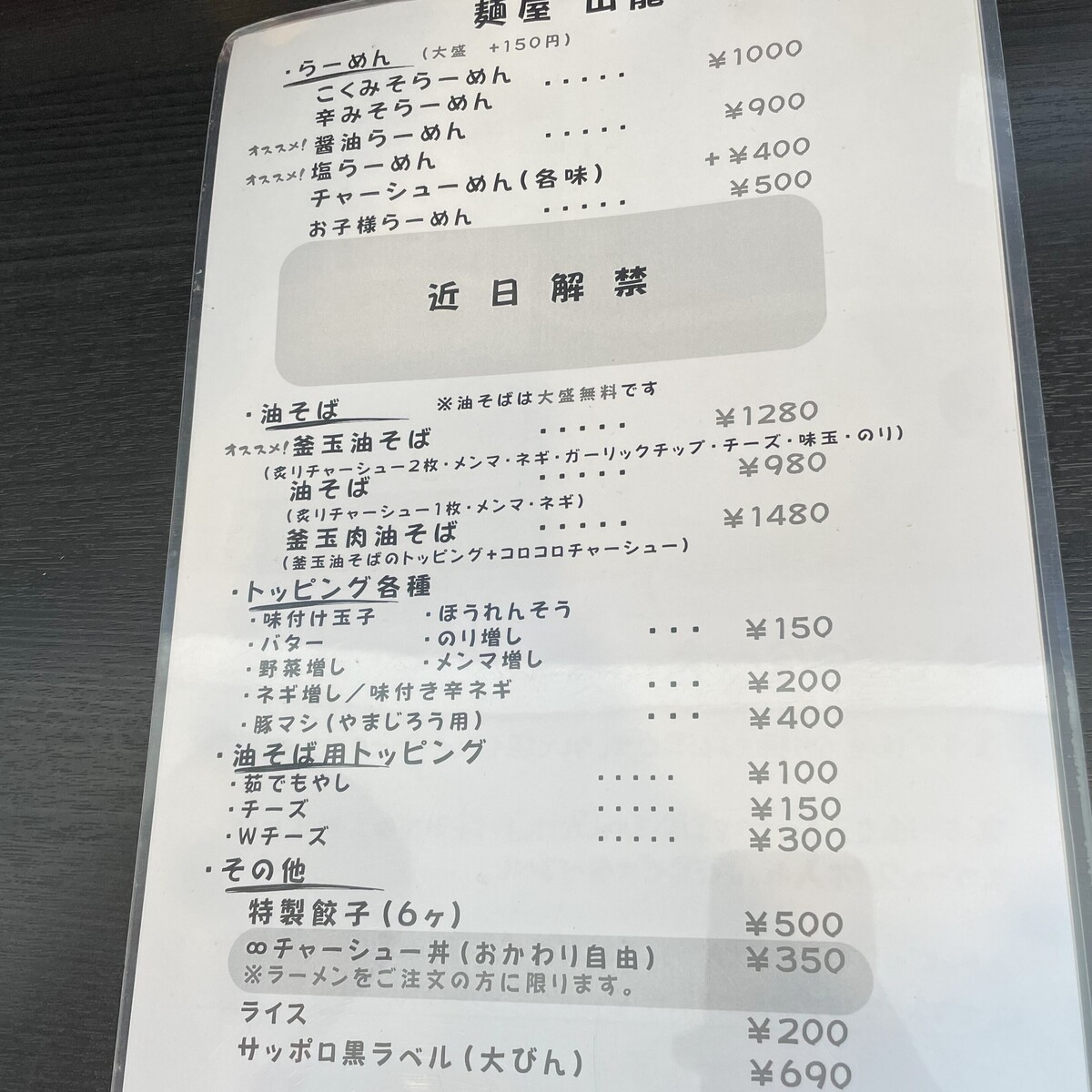 最後は移転後初訪問。『麺屋山龍』さんへ行ってきました。