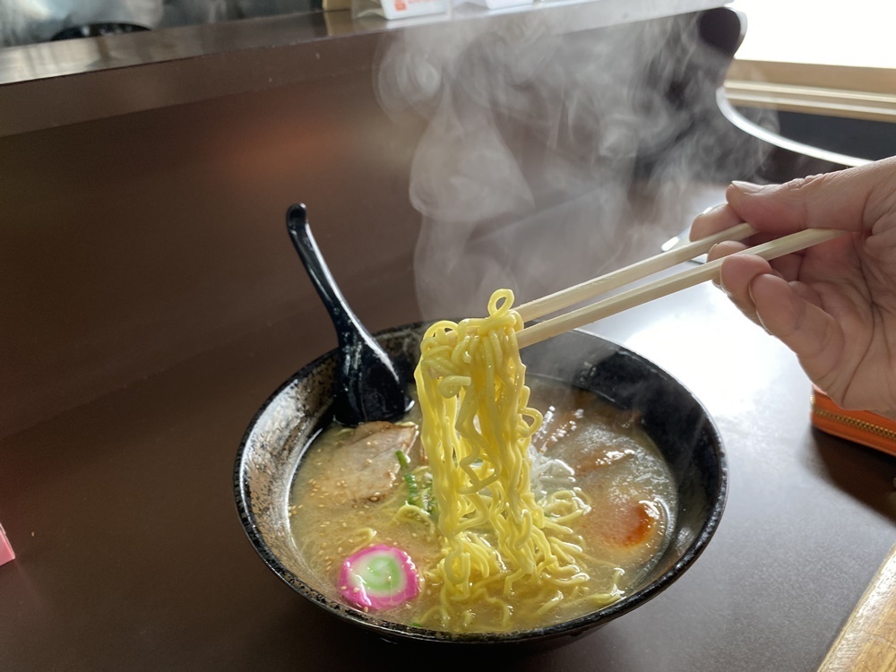 「麺屋 柊(ひいらぎ)」の塩ラーメンは、スープがアツアツ!店内が寒かったわけではないのに、湯気がモクモクの写真が撮れました。この見た目だけで優勝ですね。