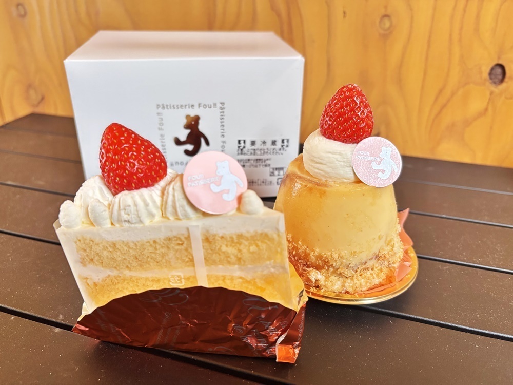 ケーキの種類が多くて、かなり何を買おうか迷いましたが、選んだのは「苺のショートケーキ」と「プリンパイ」です。イチゴの鮮やかな赤に目がひきつけられてしまいました。イチゴは、鷹栖の竹澤農園のものを使用しているそうです。