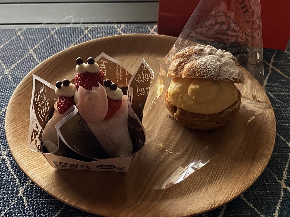ボンボンショコラも気になりましたが、それは次回のお楽しみとして取っておいて、今回購入したのは「シュークリーム」と「いちごのムース」です。