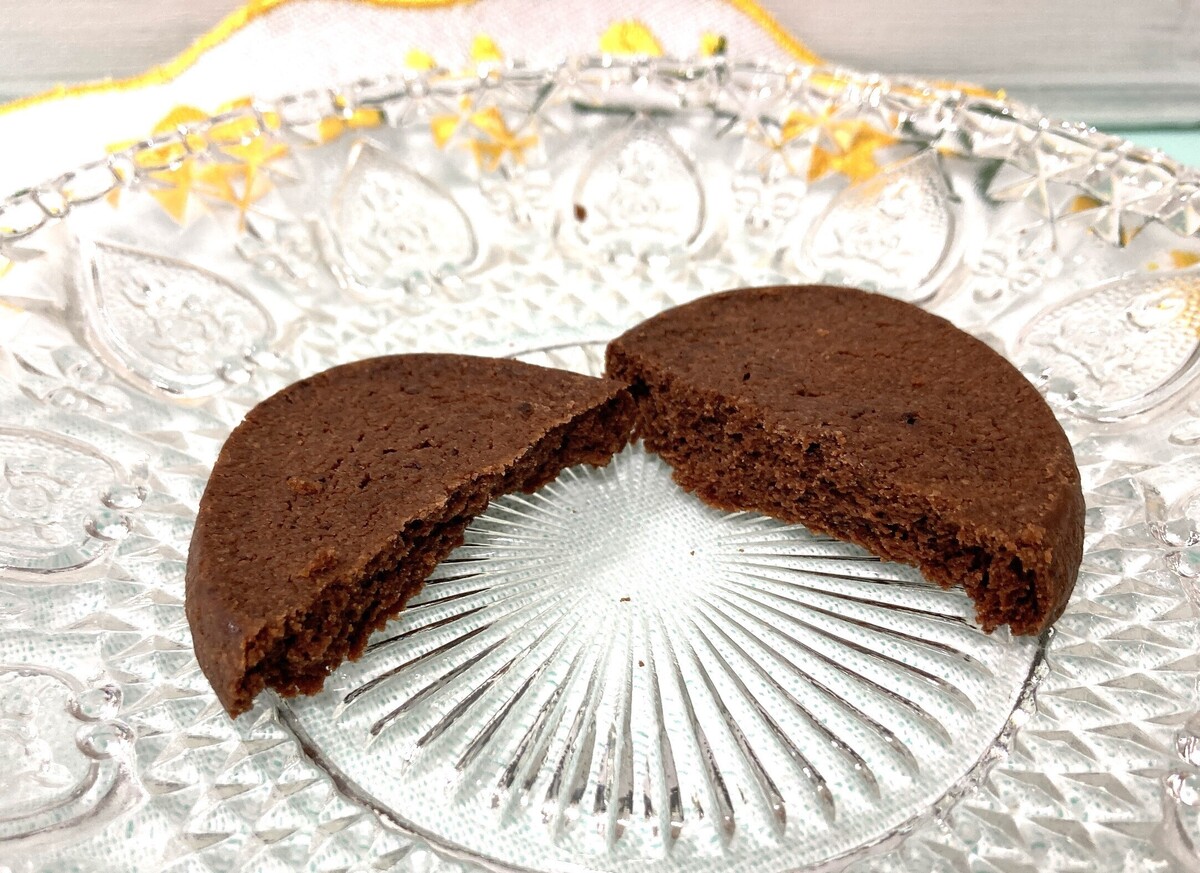 食べてみると硬めの食感と思いきや、噛むと中はホロっと柔らかい。チョコのほろ苦さとバターの風味。